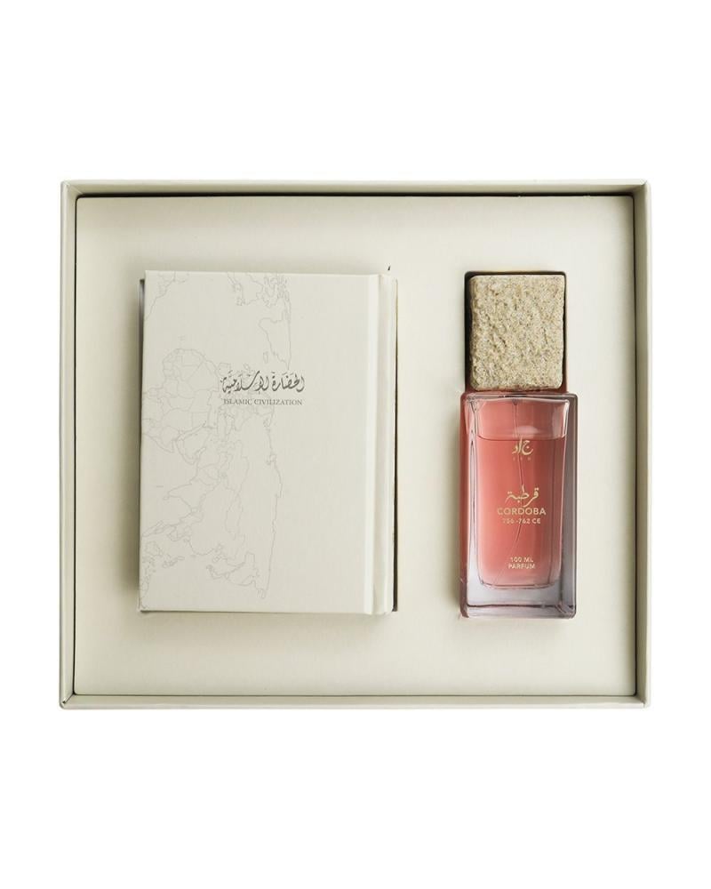 The Jad Civilization Cordoba Eau De Parfum (EDP) Gift Set is a unisex fragrance inspired by the rich heritage of Islamic civilization, particularly the golden era of Al-Andalus. With an elegant and sophisticated aroma, this scent is designed to capture the essence of culture and refinement. The gift set includes a 100 ml bottle of EDP along with a stylish notebook, making it a thoughtful and luxurious present. Ideal for those who appreciate timeless fragrances, it offers a unique blend of tradition and modernity in a beautifully curated package. Top Notes: Cardamom, Grapefruit, Orange, Rhubarb Heart Notes: Cedarwood, Cubeb, Orange Blossom Base Notes: Musk, Amber Accord, Praline